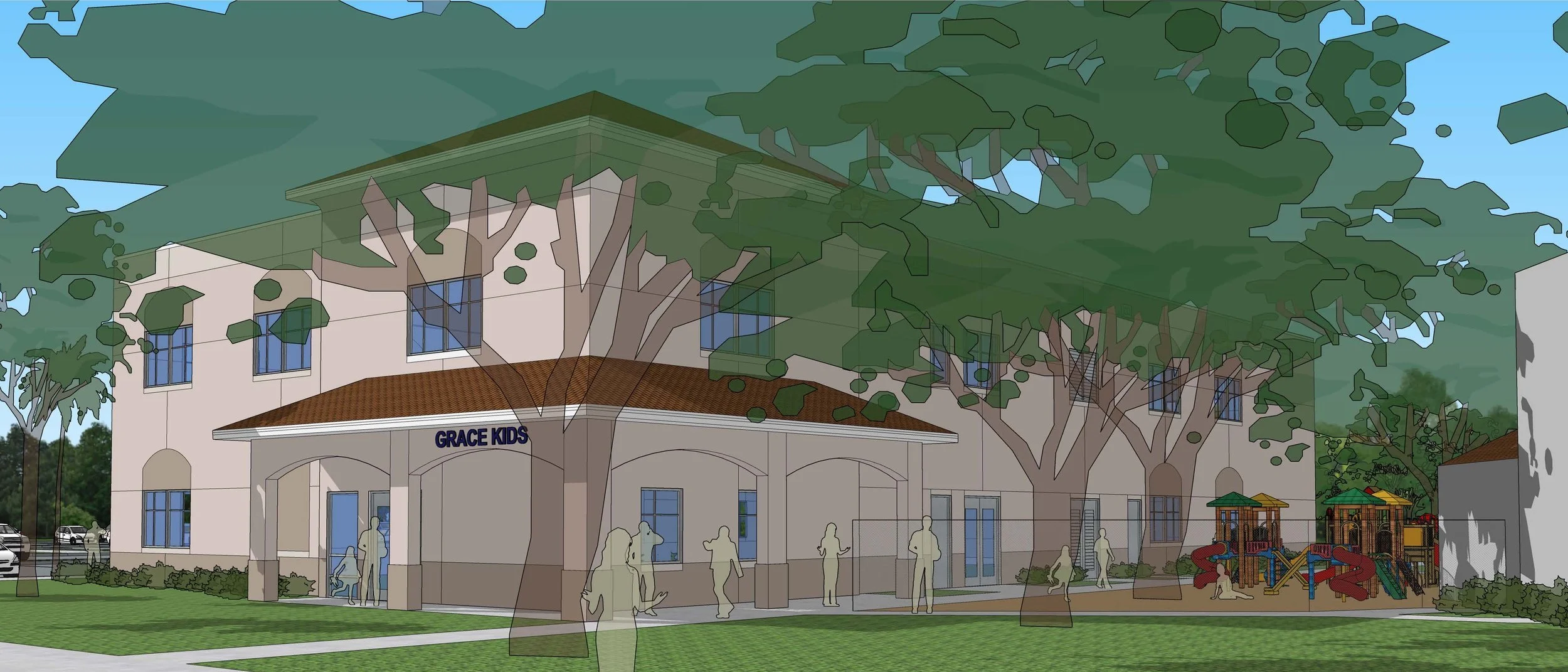 West Palm Beach has the highest percentage of never-churched people in the U.S. We are literally on a mission field. It was deemed a mission field by the North American Mission Board as a SEND location, meaning there is an exponentially higher need for churches. We are well on our way, with currently 71 first-generation nations represented in our congregation. What a fantastic opportunity to reach the nations from Okeechobee Blvd! Because of this unique opportunity, we must strengthen our current footprint and eliminate unnecessary barriers to people hearing the Gospel. To do this, we believe our church campus on Okeechobee Blvd. needs our attention. Today, there is currently only one limited entrance and exit to the property. Quick turnarounds between three services on Sundays can be frustrating and even prohibitive for people just trying to drive and park on the property for the first time. Due to the growth of Grace over the last several years, parking has become the next focus for improvement. We believe that now is the time to build out our Grace Kids area, expand our parking, and create more room for ministry.